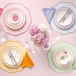 Șervetul se remarcă prin forma rotundă și marginea curbată, precum și prin nuanța delicată Pink, care adaugă un accent elegant și feminin în orice decor. Designul clasic îl face ușor de integrat în orice aranjament de masă sau ambient.
